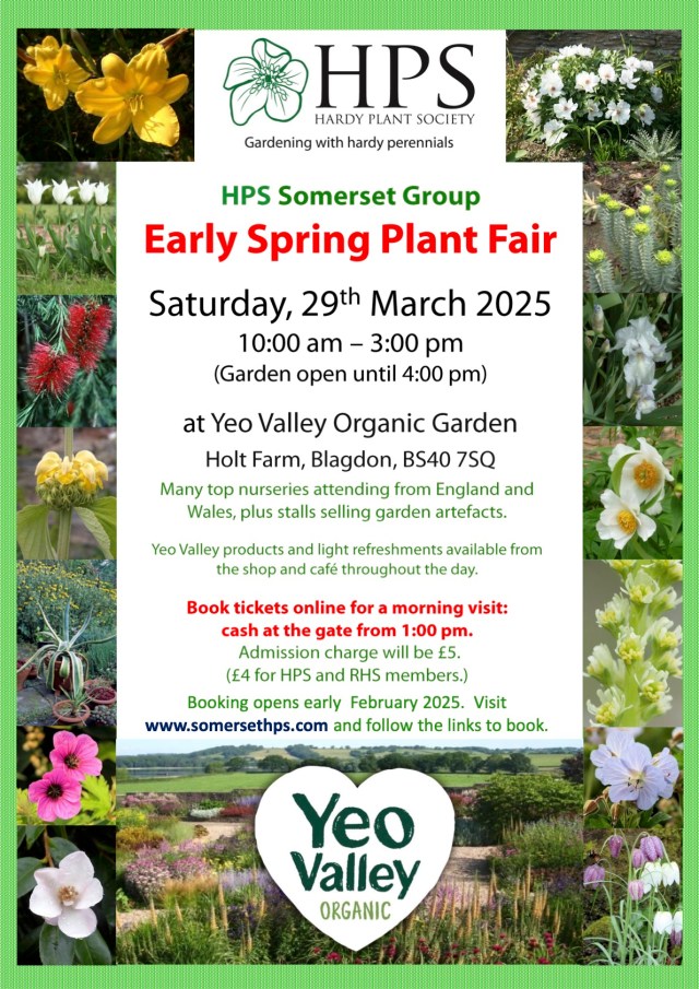 Tickets are selling well for the Hardy Plant Society Somerset Group Early Spring Plant Fair at Yeo Valley Organic Garden. You may purchase yours by using this link. They remain at the same low price of only £4 for HPS and RHS members and £5 for everyone else. Tickets for entry after 1.00pm may be purchased on the gate (cash only please).